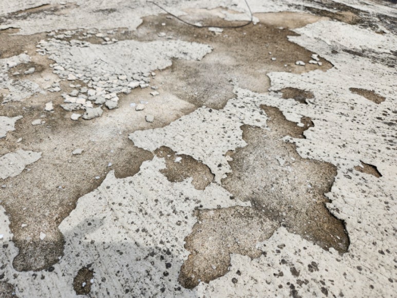 부식이 심해 들뜬 콘크리트와