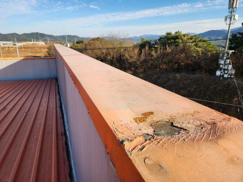 판넬 끝부분 부식으로 인해 누수도