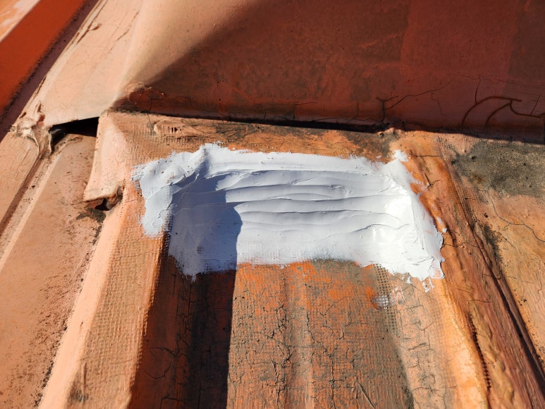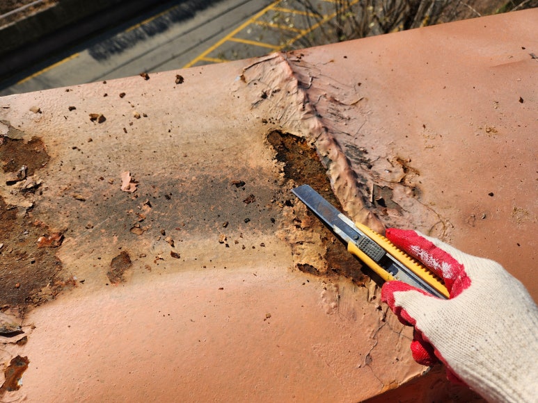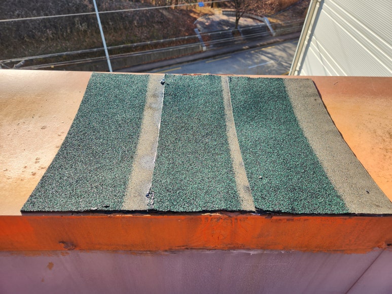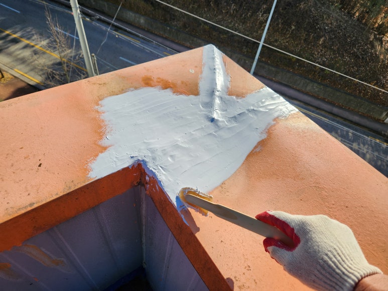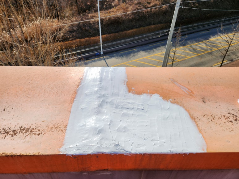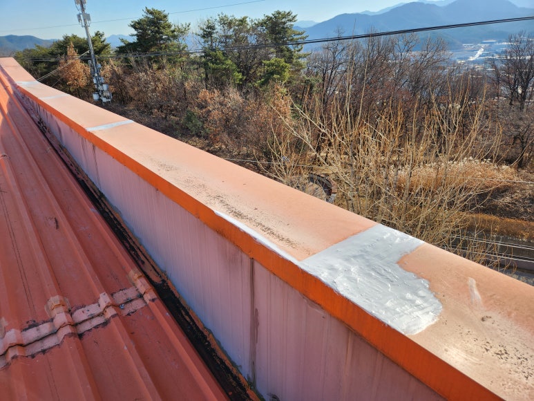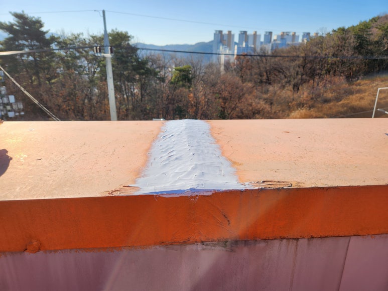 난간 후레싱 이음부 보수가 끝났습니다