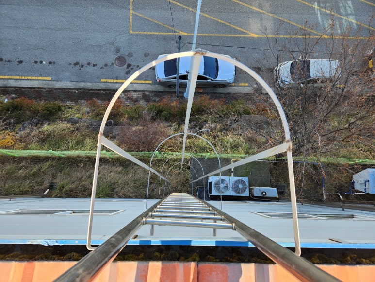 공장 뒤편 안전 사다리가 설치되어 있어