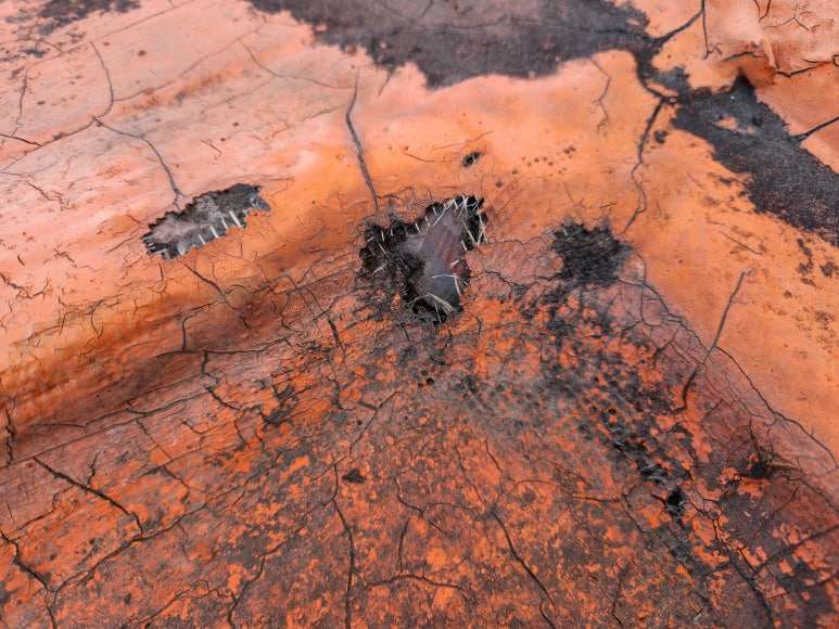 구멍이 난 부분은 노출 시트로 보강 후