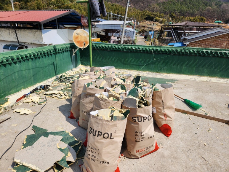 옥상에 우레탄 폼 방수를 했었고