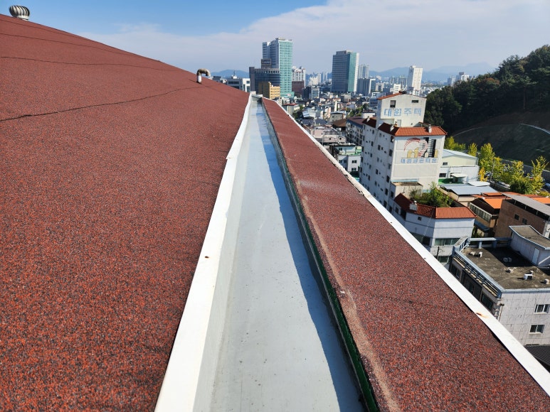 옥상 박공 지붕에는 노출 방수시트가