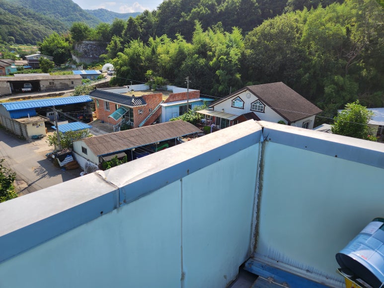 그늘 한 점 없는 판넬 지붕 옥상