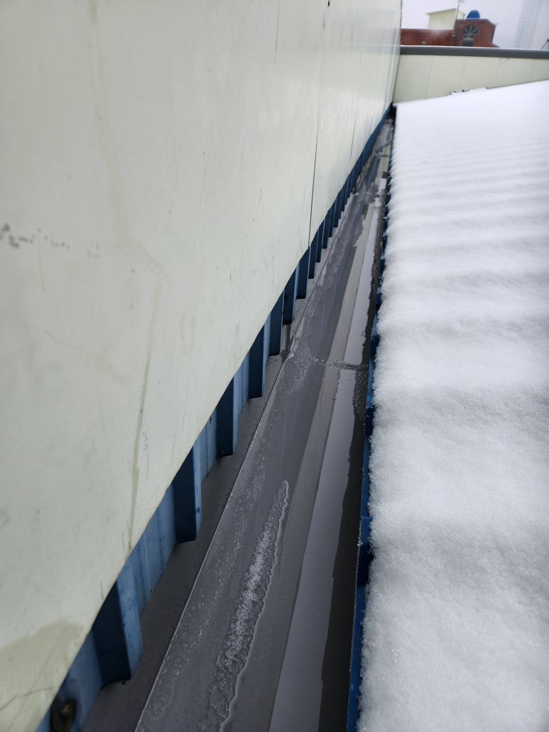 점검 결과 옥상 판넬 물받이 부분에