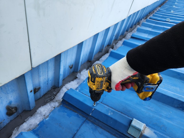 물받이 이음부 보수가 완료되면