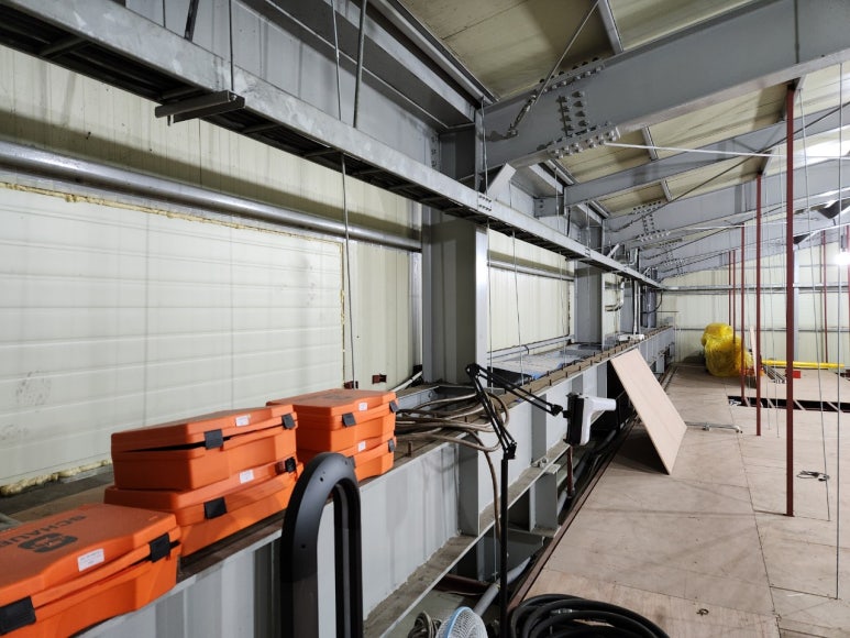 지어진 공장 내부 천정에서
