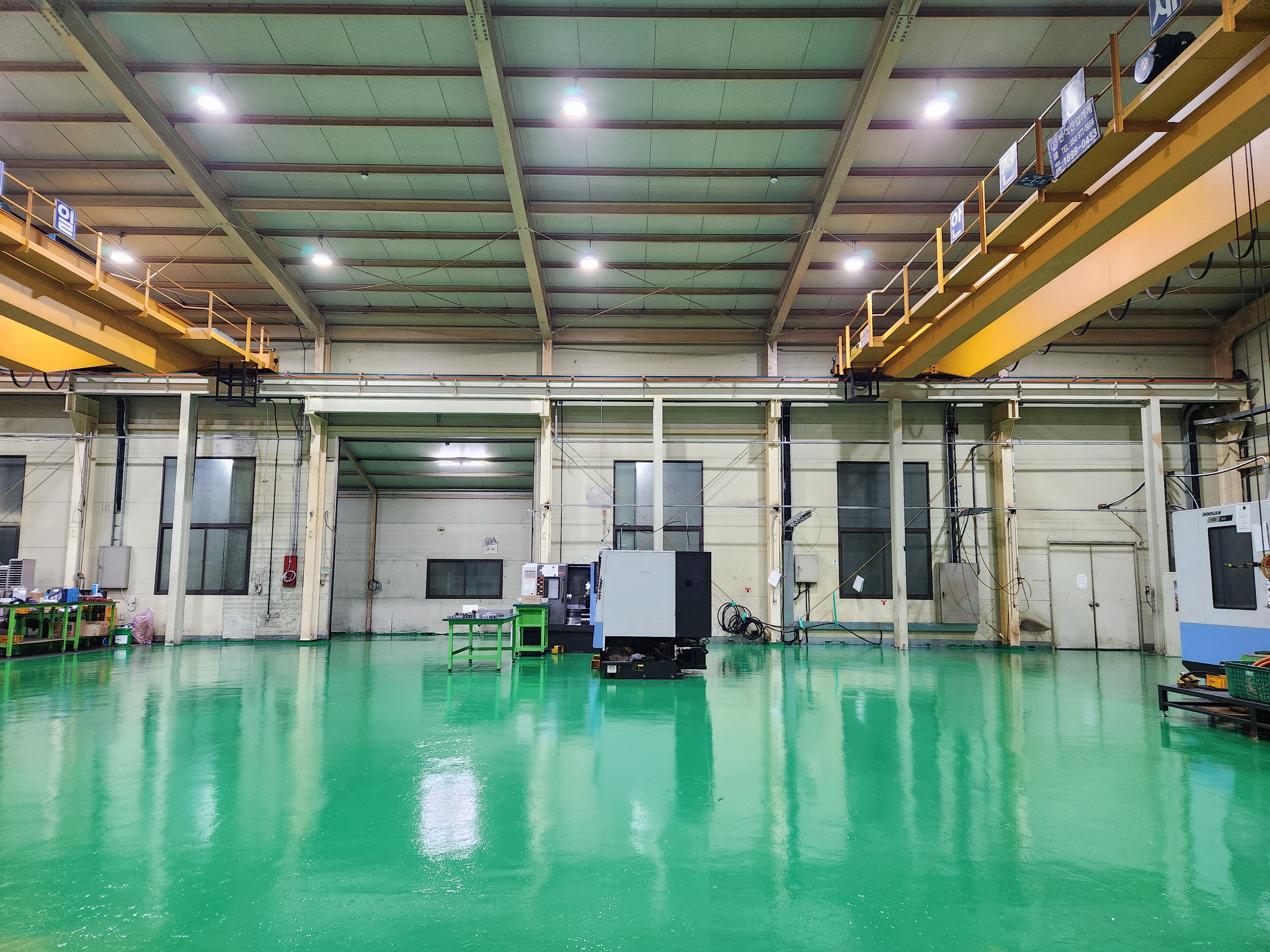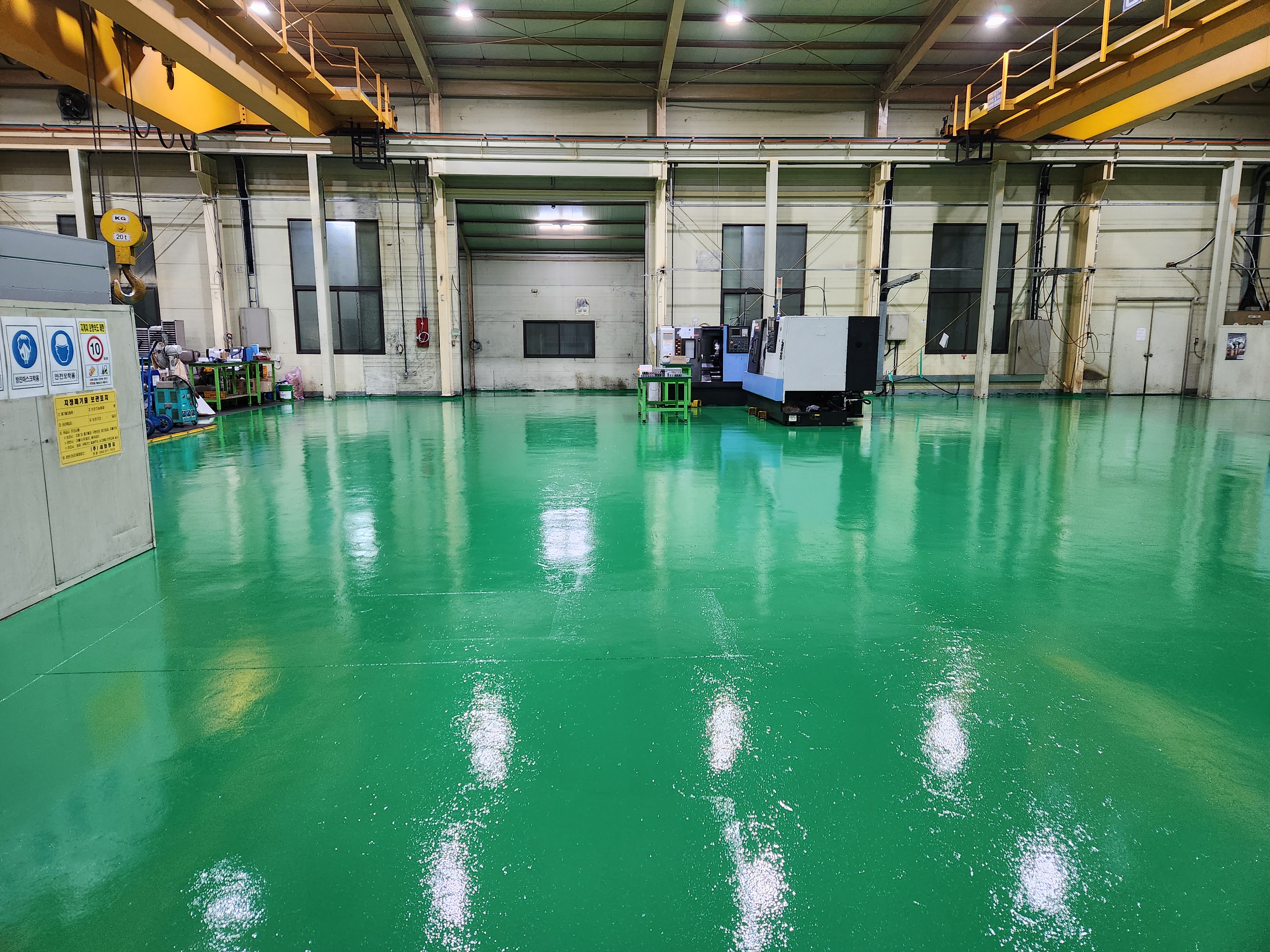 구미누수 공장 바닥을 오래사용하다 보면 오염이 되거나 파여서 사용하는데 불편함이 있어서 다시 공사를 하여야 하므로 에폭시로 마무리 하였다.