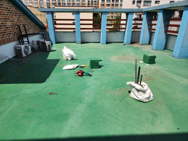 옥상 바닥 청소가 완료되면