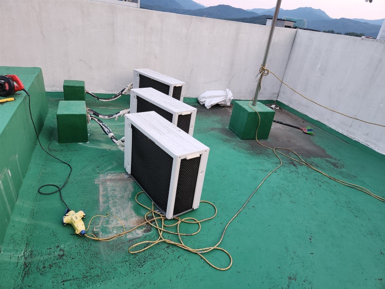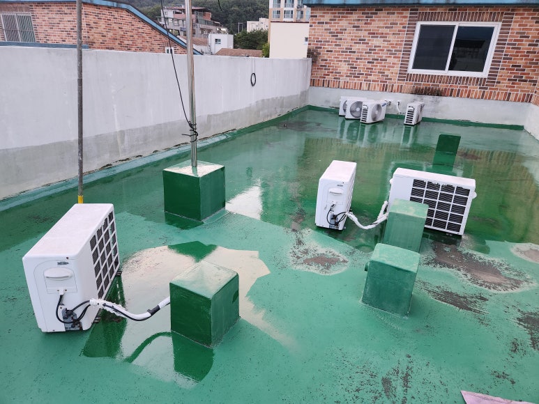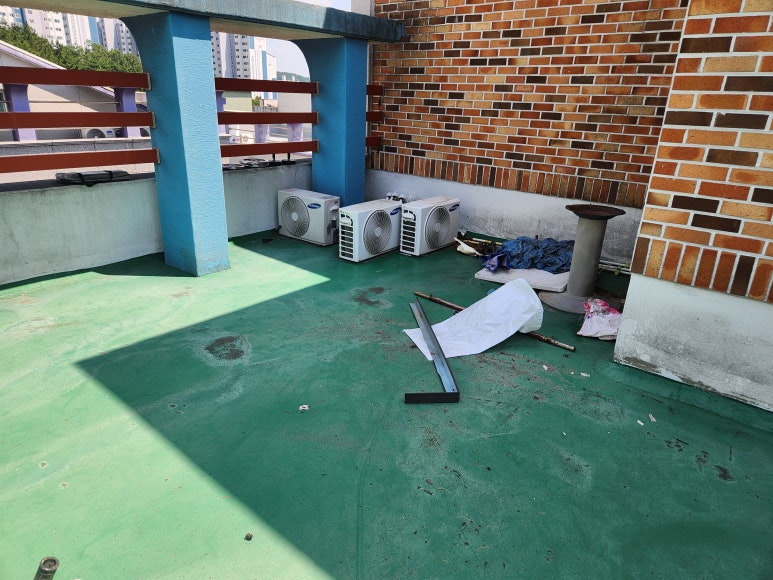 에어컨 실외기와 옥상 바닥