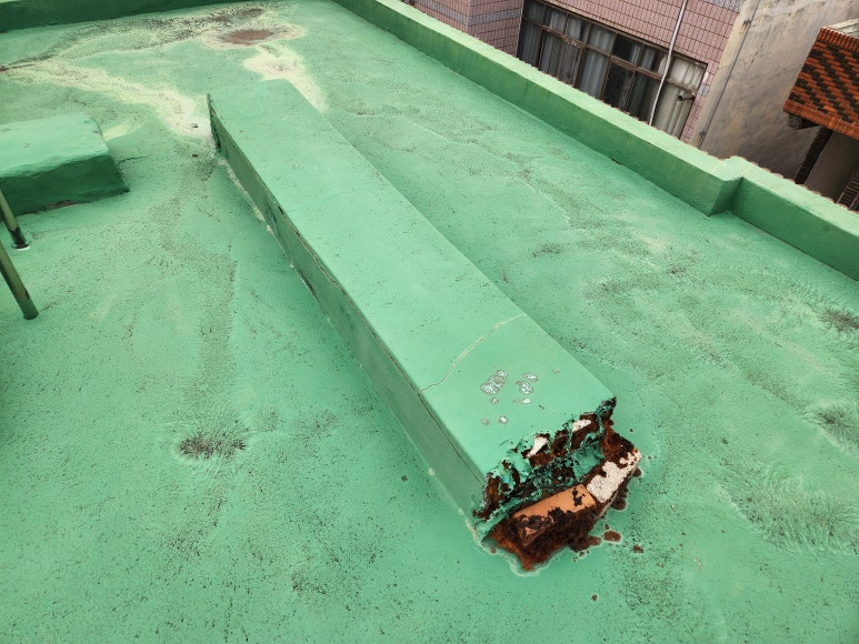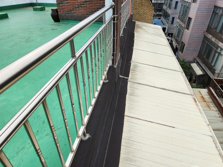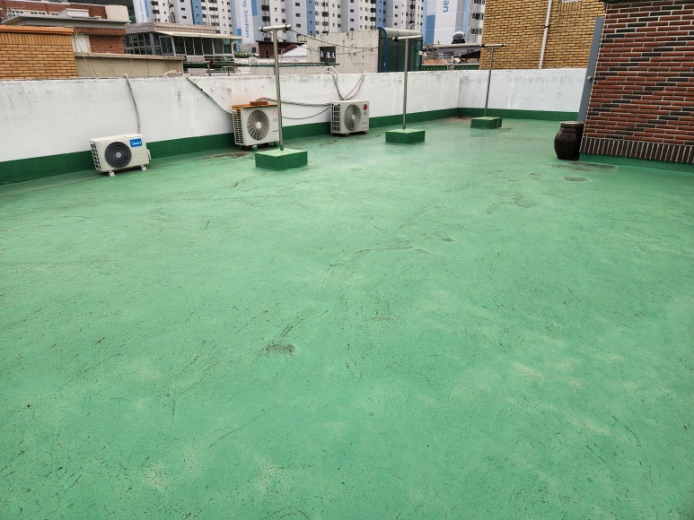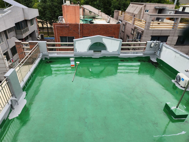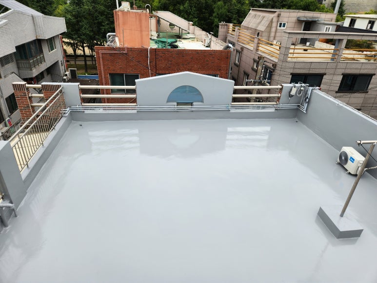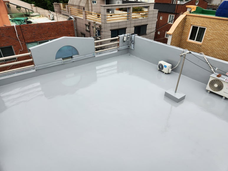 옥상 방수 공법은 우레탄 방수(회색)이며