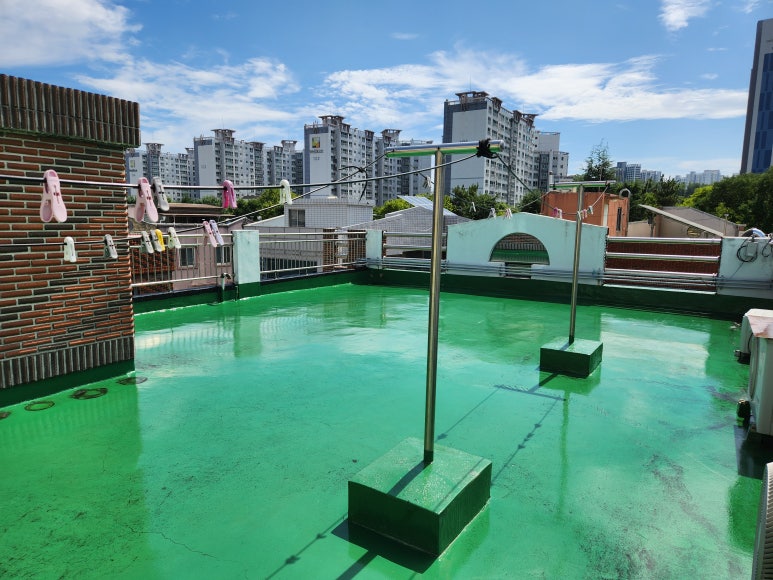 벽체와 바닥, 빨래건조대, 우수 드레인 주변 등