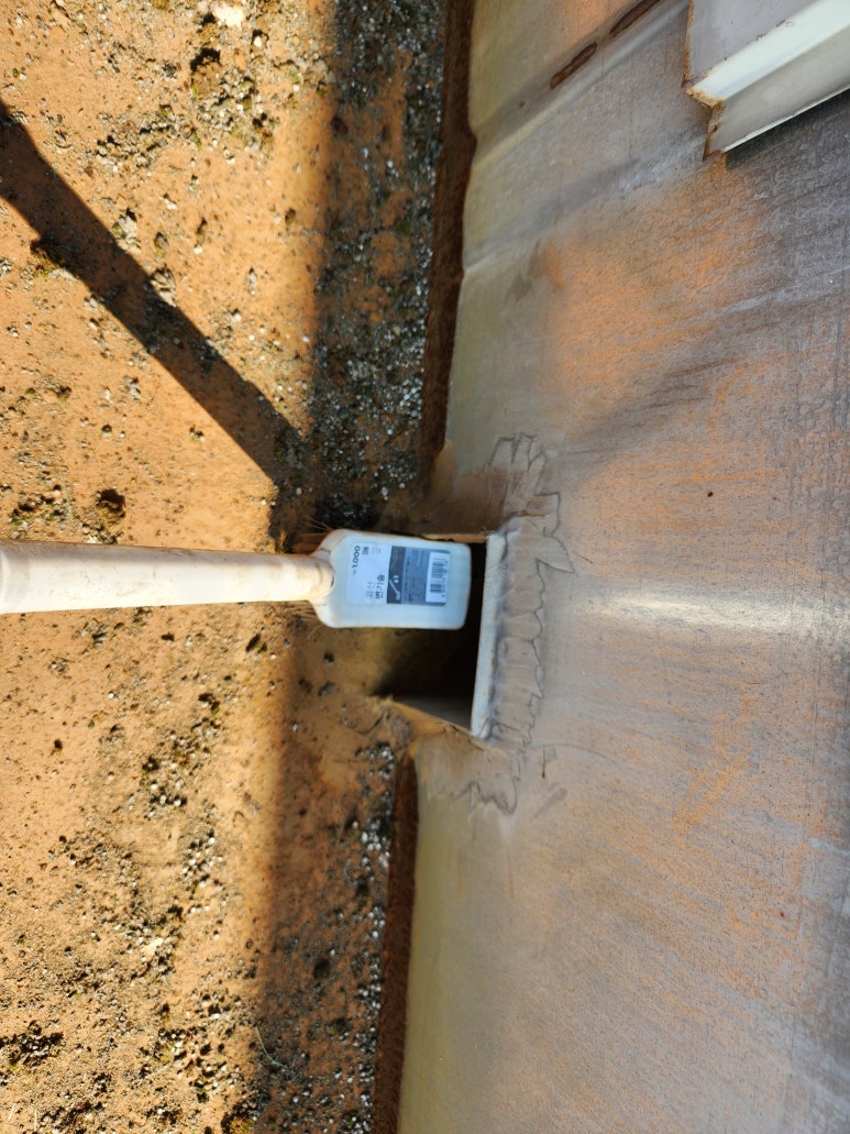 배수로 부위에 방수제의 접착력을