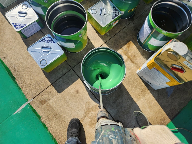 우레탄 중도(주제+경화제)는 전용 교반기로