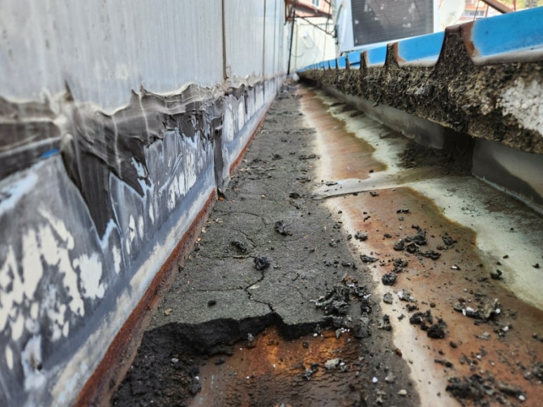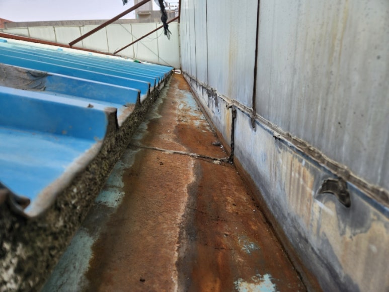 구미 상가 판넬 옥상 배수로(물받이) 방수공사