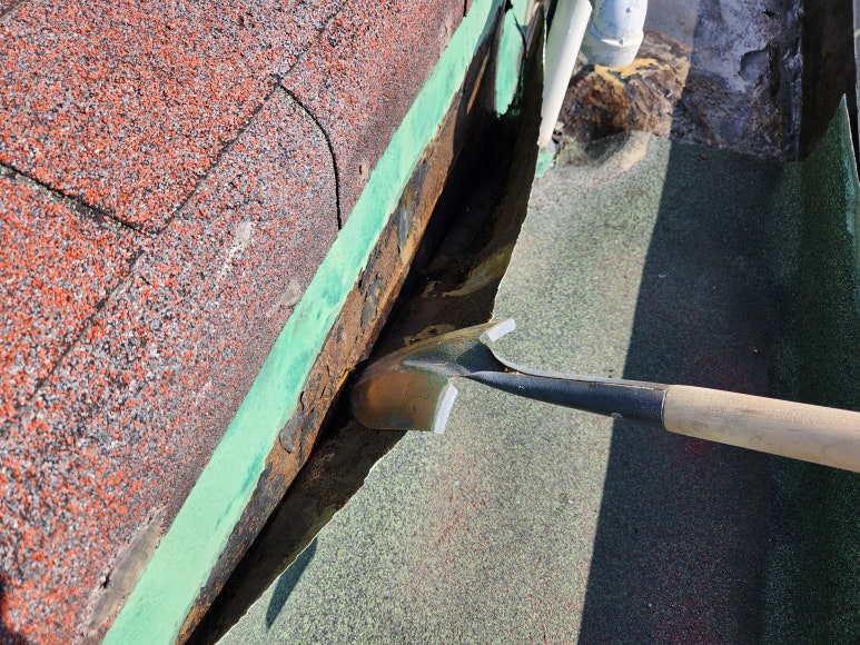 기존 시공된 노출 방수시트 밑에