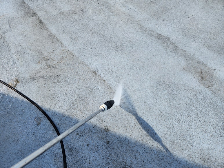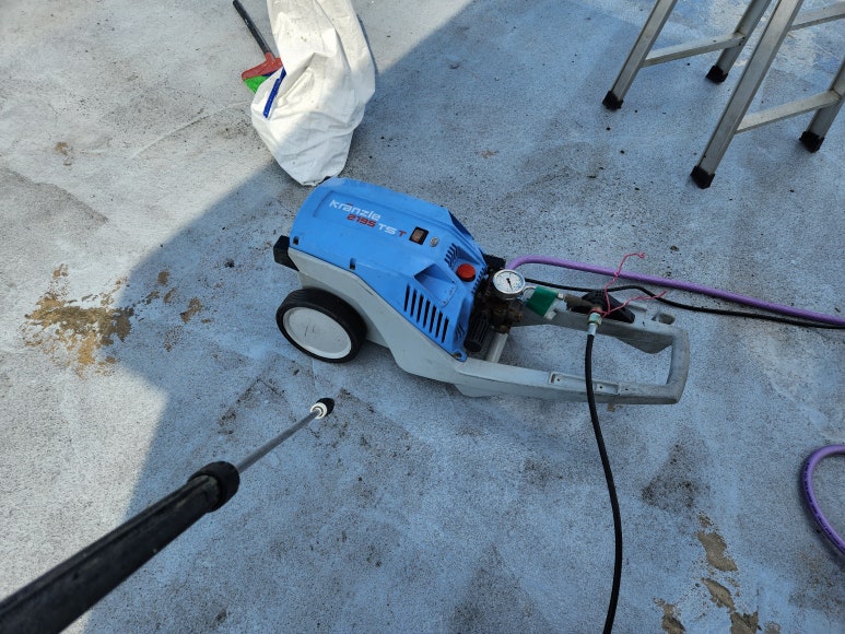 고압세척기로 강하게 청소합니다