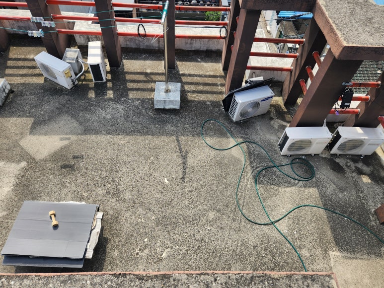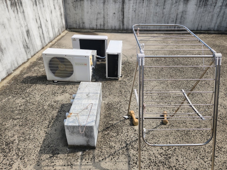 옥상 바닥과 에어컨 실외기가
