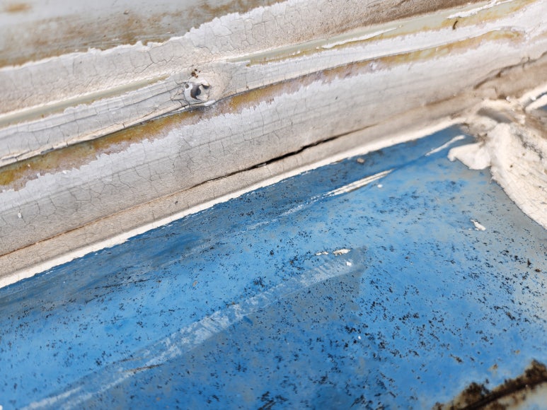 부식이 심하여 구멍이 난 부분은