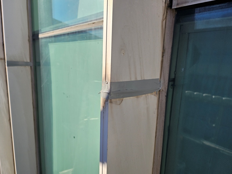 기존 창틀 하부에는 녹 발생과 누수 흔적이 확인되었습니다.